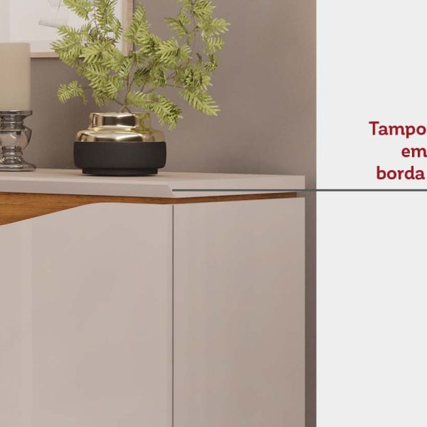 Uma ótima solução para sua casa, o Buffet Nice é o complemento ideal para compor a sua sala de jantar. Possui um design moderno e sofisticado, contando com um tampo com borda chanfrada e espessura de 25mm, que também proporciona muito mais resistência. Com três portas de giro em MDF com detalhe usinado, além de duas prateleiras internas você terá espaço para guardar seus objetos e utilidades domésticas organizadamente, é um móvel prático e funcional.
