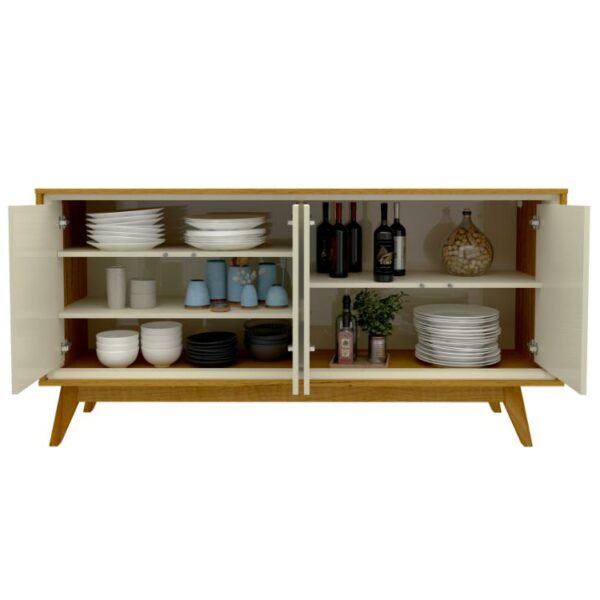 O Buffet Requinte é um móvel elegante e prático, projetado para fornecer espaço de armazenamento e servir como peça de destaque na decoração. Com um design refinado e detalhes cuidadosos, oferece compartimentos para organização de utensílio, louças e obejtos decorativos. Fabricado com atenção à qualidade, é uma escolha sofisticada para agregar funcionalidade e estilo a ambientes como salas de jantar e áreas sociais.