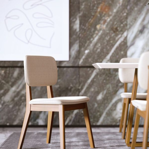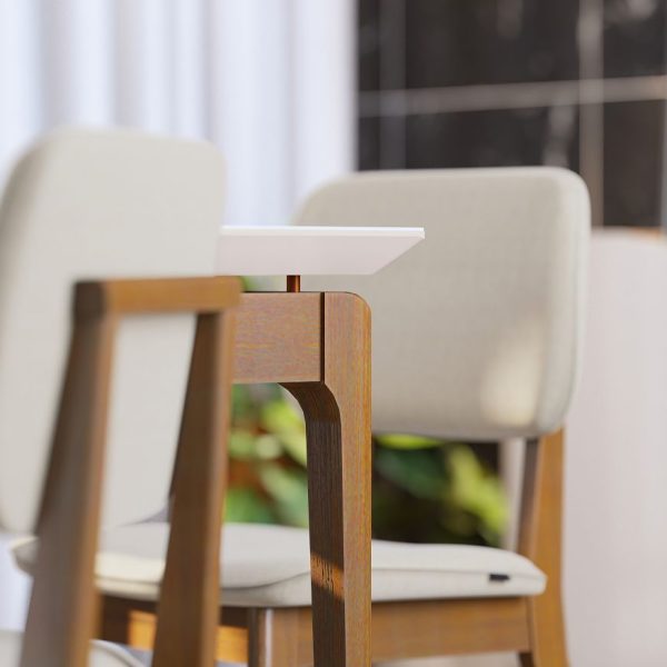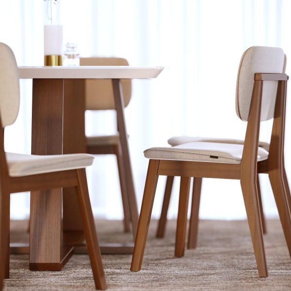 Puxador no encosto em madeira maciça.