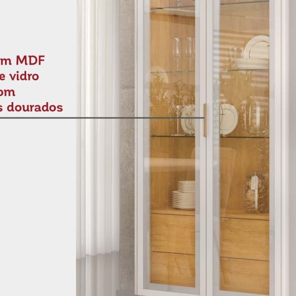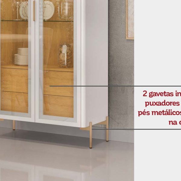 duas gavetas internas com corrediças telescópicas e puxadores dourados, você terá espaço para guardar