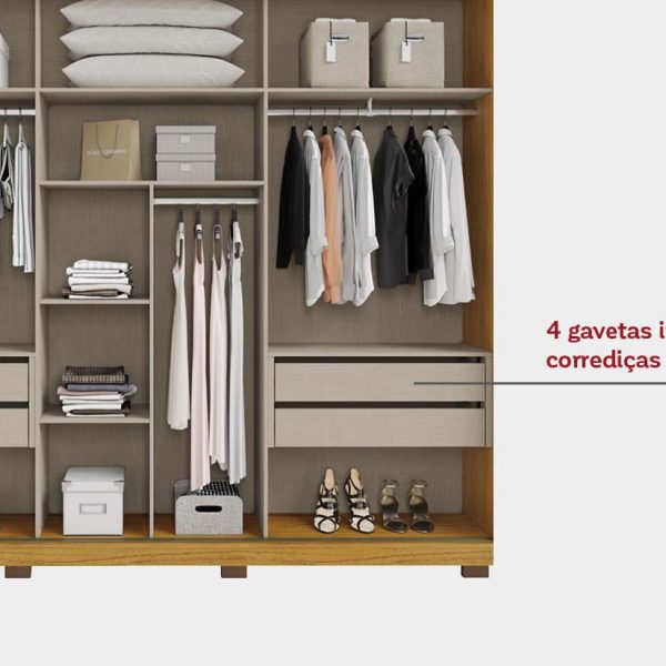 Sua divisão interna foi desenhada com muito cuidado, sendo feita uma pesquisa para atender todas às necessidades dessa linha, conta com 4 gavetas com corrediças telescópicas.
