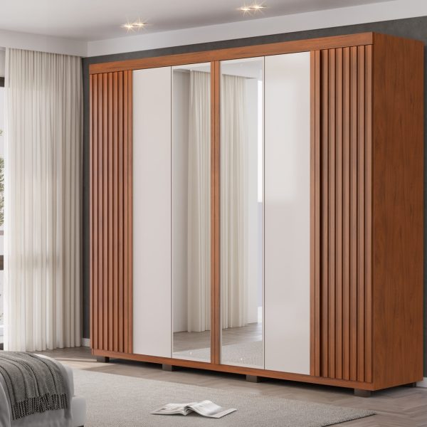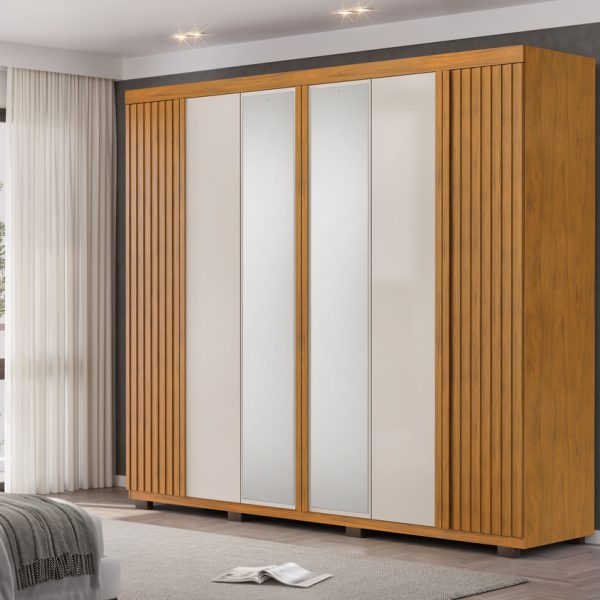 O Guarda-Roupa London é um produto espaçoso pensado para o armazenamento de uma maneira funcional e prática, para isto ele conta com 6 portas de giro com dobradiças metálicas de 35mm com amortecimento e 4 gavetas internas com corrediças telescópicas, se você precisa de um pouco mais de espaço, conte com o kit de duas gavetas adicionais, assim seu produto fica com 6 gavetas no total, permitindo uma organização mais fácil ainda, ferragens de qualidade garantindo maior facilidade de uso e durabilidade para o seu móvel.