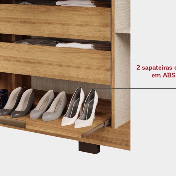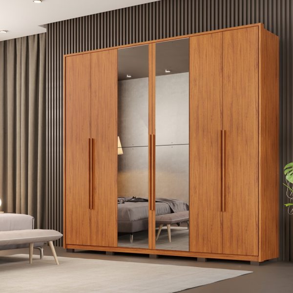 O Guarda-Roupa New Império é um produto espaçoso pensado para o armazenamento de uma maneira funcional e prática, para isto ele conta com 6 portas com dobradiças metálicas que possuem freios, garantindo fechamento suave e maior durabilidade para as portas, sendo que as duas portas centrais possuem amplos espelhos. Além disso este produto conta com 6 gavetas internas com corrediças metálicas e de duas sapateiras deslizantes também com corrediças metálicas.
