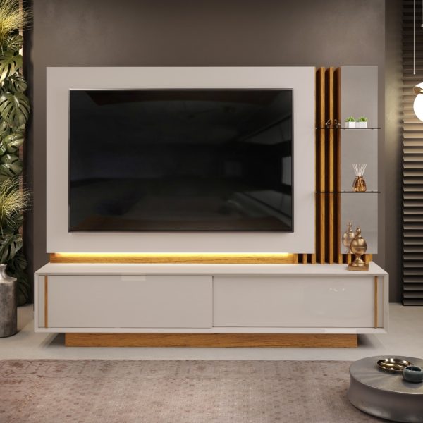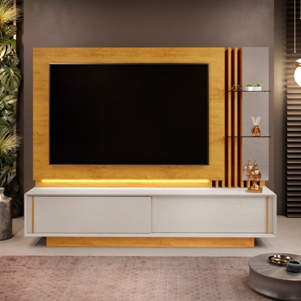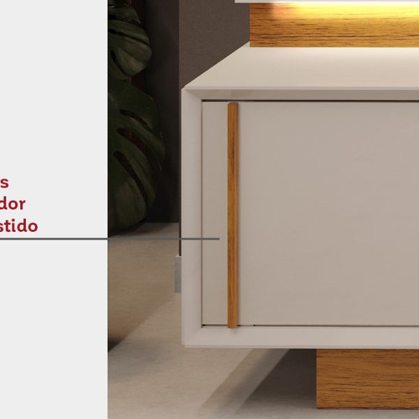 é uma ótima opção para agregar beleza e praticidade ao seu lar. Sua estética é contemporânea, com detalhes ripados, espelhos e uma caixaria toda chanfrada.