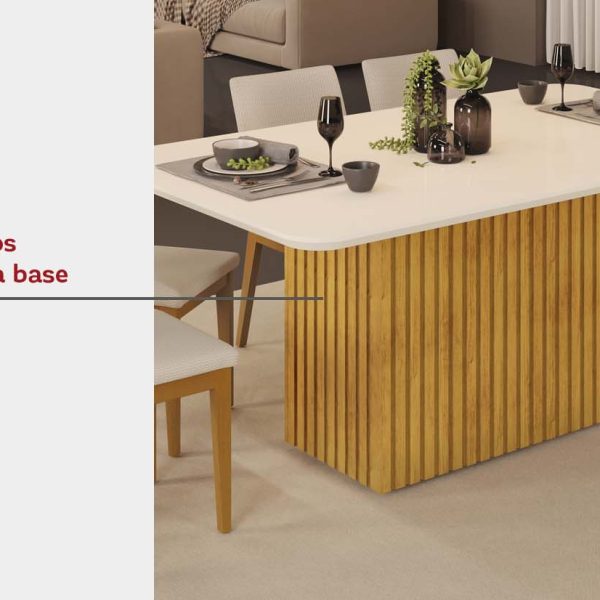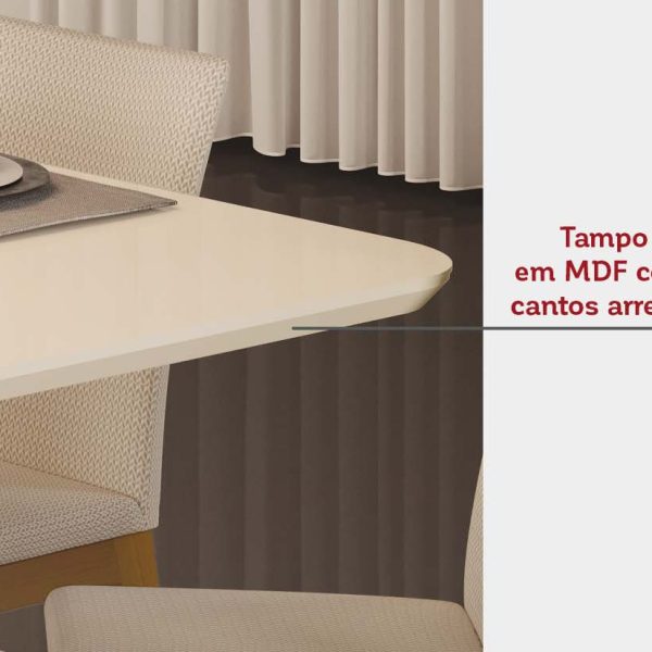 O tampo possui vidro pintado aplicado na madeira, aumentando a durabilidade do produto e tornando a limpeza mais fácil e prática. Além disso, os cantos são arredondados, tornando sua sala de estar mais segura. Esta mesa é produzida em MDF e MDP, que são chapas de madeira reconstituída advindas de reflorestamento, matéria prima que não prejudica o ambiente e garante durabilidade e resistência ao seu produto.