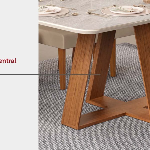 A Mesa Celeste é o que você precisa para decorar a sua sala de jantar, ela possui um design moderno em formato trapézio inclinado e com peças dispostas em formato de cruz, criando um desenho dinâmico e muito elegante. Outro detalhe interessante é que entre as peças principais, existem delicadas peças intermediárias em formato triangular, que proporcionam um diferencial na geometria do produto.