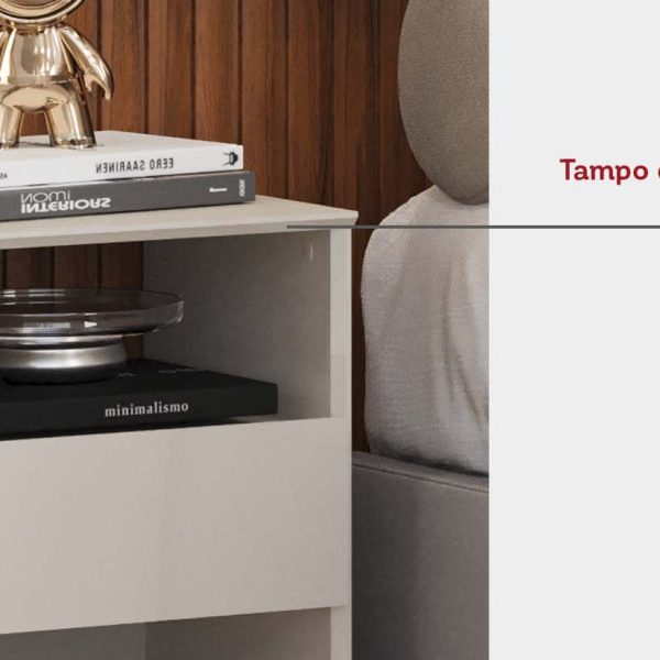 Para guardar seus objetos de forma prática e organizada, a Mesa de cabeceira Lara conta com uma gaveta