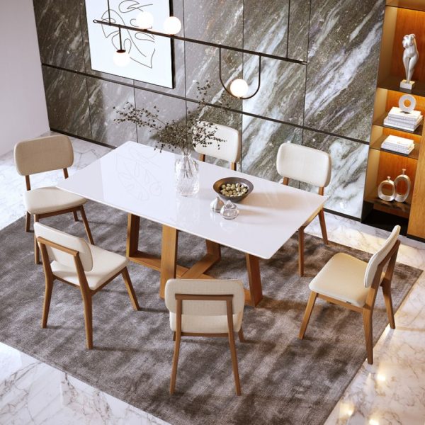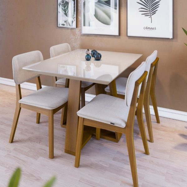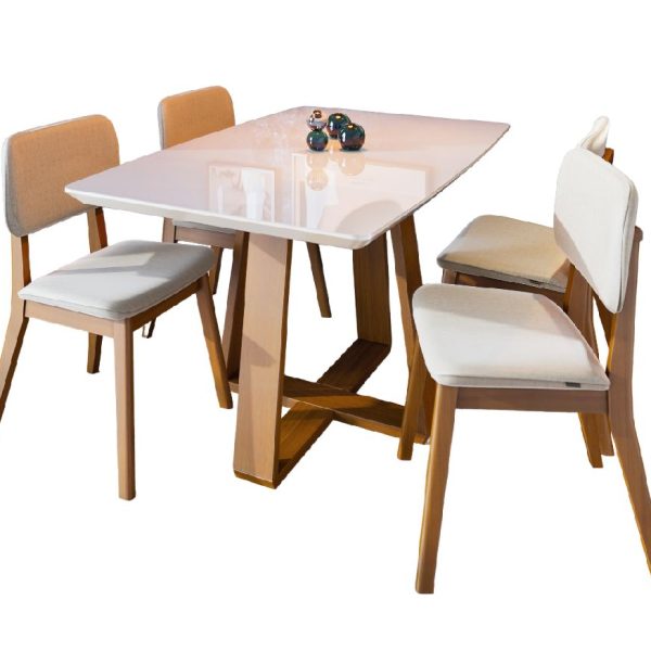 2 opções de tampo: vidro 3mm pintado Off White ou lâmina de madeira cinamomo.
