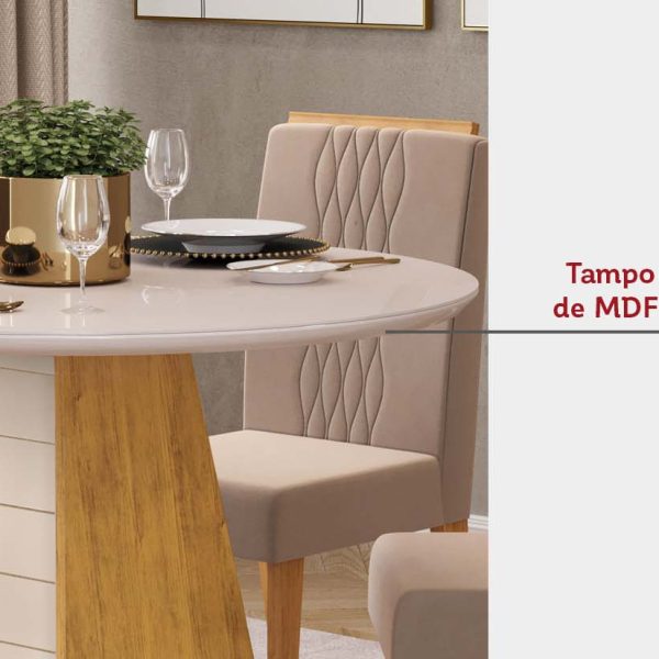 Na medida de 900x900mm, é ideal para espaços compactos e acomoda 4 pessoas confortavelmente. Os frisos decorativos no centro da base, dão um charme especial ao produto, um diferencial único e moderno. O sistema estrutural da mesa é muito resistente, composta por peças em MDP e MDF, que são resistentes e ecologicamente corretos, garantindo a segurança e durabilidade do móvel. Aproveite os momentos de lazer com amigos e familiares em um ambiente aconchegante e contemporâneo.