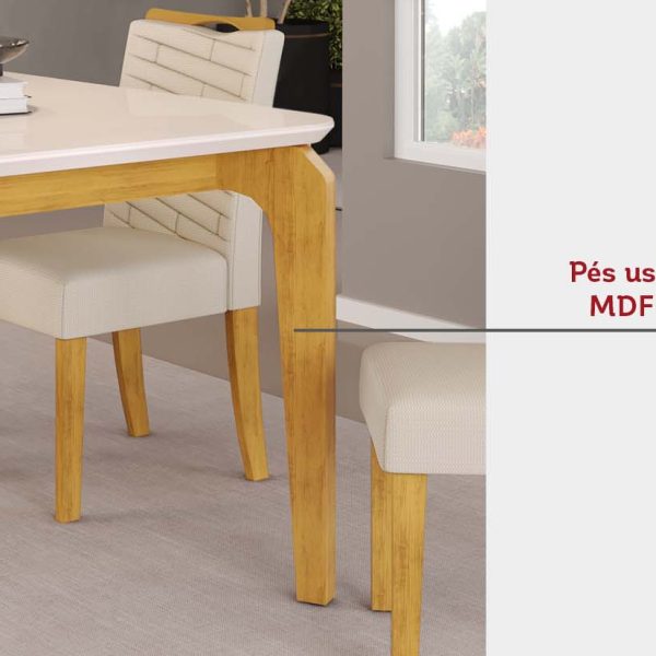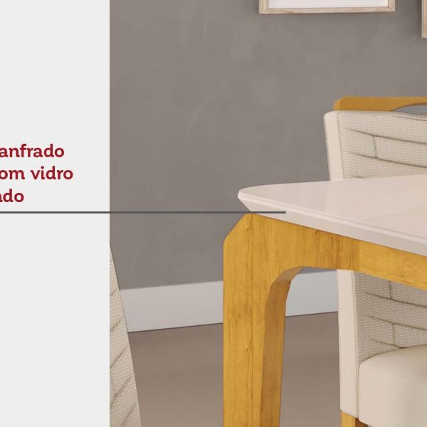 beleza, mas também muito conforto. O desenho autêntico dos seus pés, aliado ao tampo chanfrado com vidro, tornam essa mesa única e sofisticada, ideal para compor a sala de jantar dos seus sonhos.