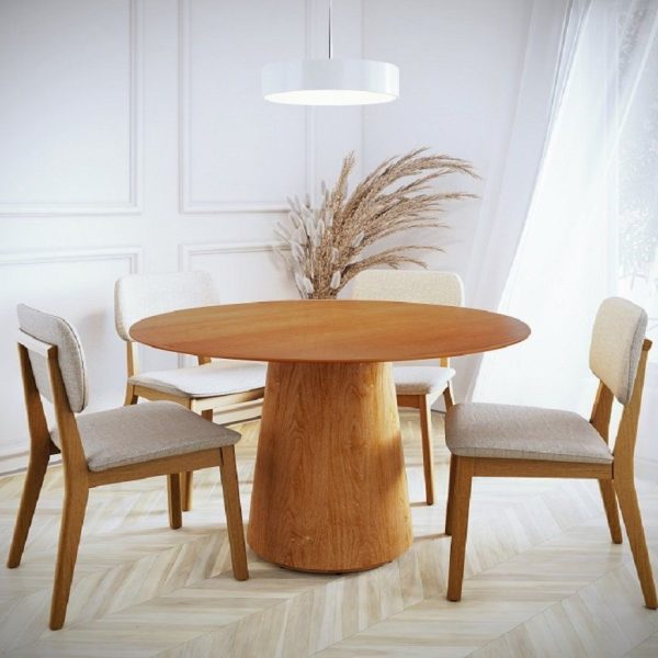 Base: revestida em lâmina de madeira cinamomo em formato cônico.
