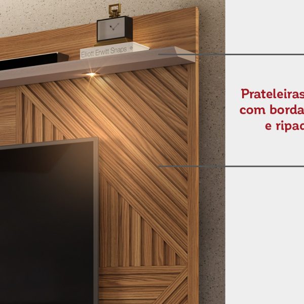 O Painel Arezzo é um produto que vai ser o destaque da sua sala de estar, com uma estética contemporânea e muito elegante. O painel central conta com um lindo detalhe em sua lateral de peças ripadas em diferentes orientações, formando um charmoso mosaico. Este painel abriga TV’s de até 65”