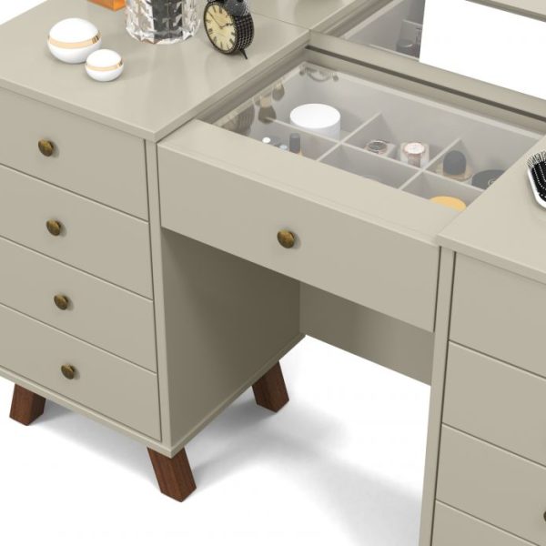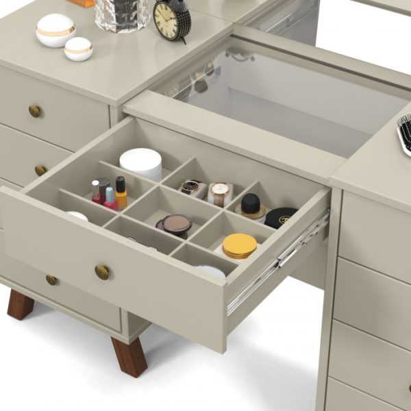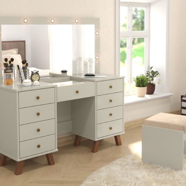 Sinônimo de Elegância e Funcionalidade em Cada Detalhe. A Penteadeira Camarim Eloá é um verdadeiro símbolo de beleza e sofisticação, projetada para iluminar o dia a dia, assim como as mulheres são naturalmente iluminadas.