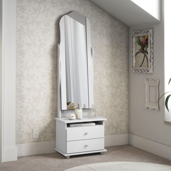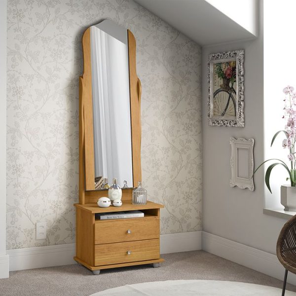 Moldura com espelho giratório e haste de aço;