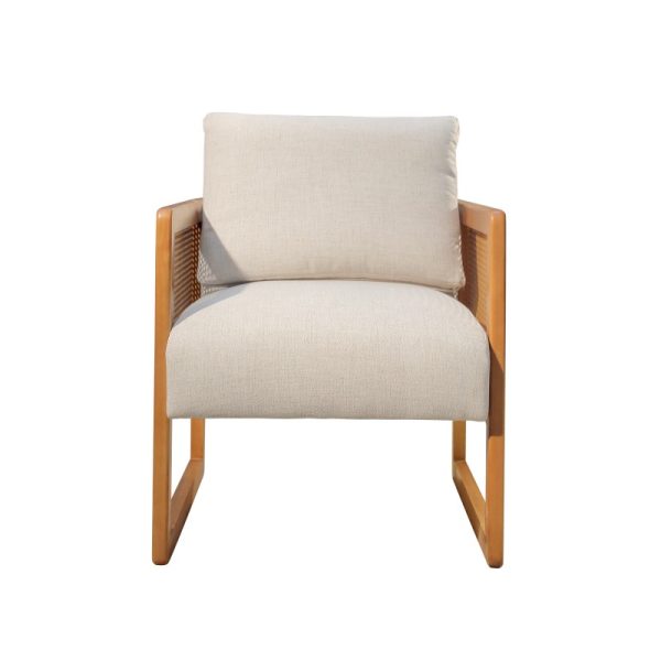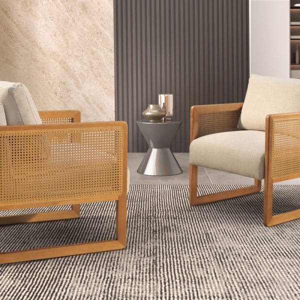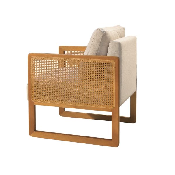 Encosto com almofada solta em fibra de poliéster siliconada.