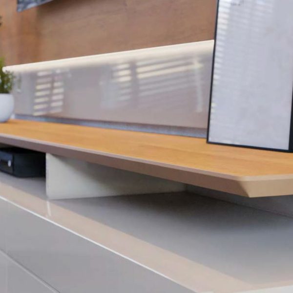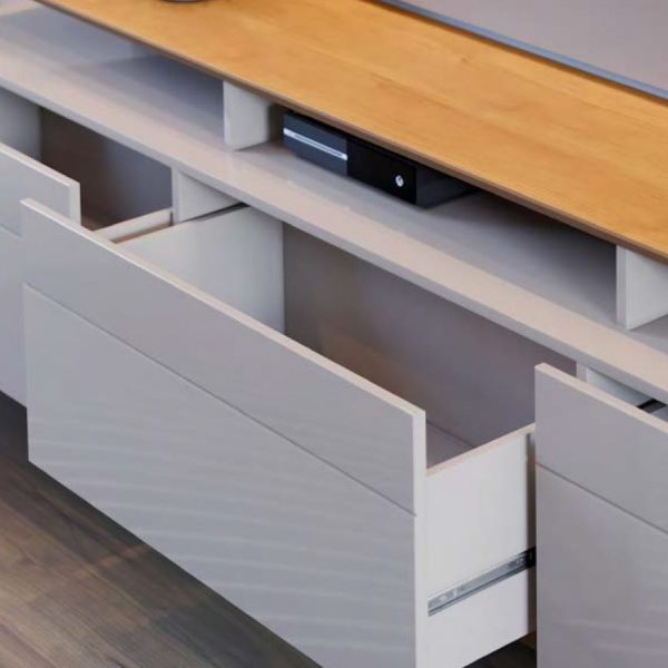 Tampo superior em MDF 25mm – chanfrado 45º – borda laqueada.