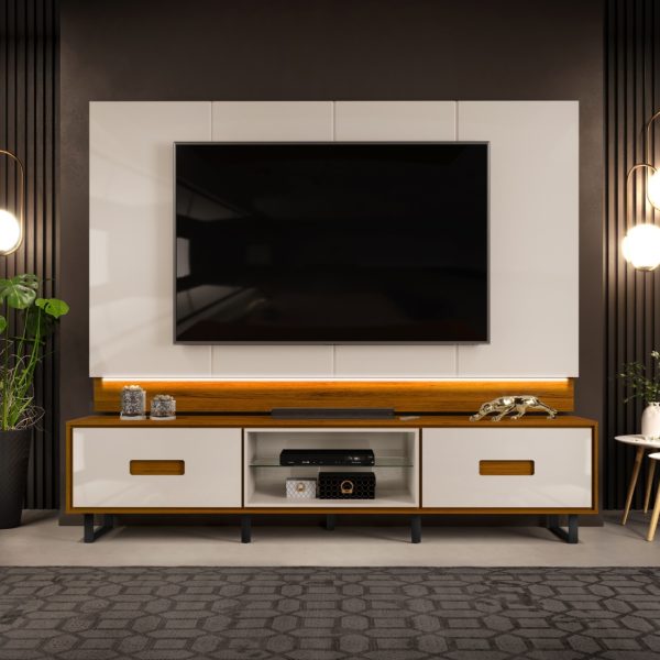 É uma escolha elegante e versátil para a compor sua sala de estar, com seu design contemporâneo e funcional, este produto apresenta um ótimo equilíbrio entre estética e funcionalidade, facilitando a organização do seu ambiente, além de deixá-lo de cara nova. Produzido em em MDP e MDF, proveniente de madeira de reflorestamento, suas medidas permitem acomodar TVs de até 75 polegadas, o melhor do entretenimento para você e sua família. No painel existem chanfros usinados, além de uma faixa inferior com iluminação LED, que dá um toque de sofisticação a mais no seu produto.