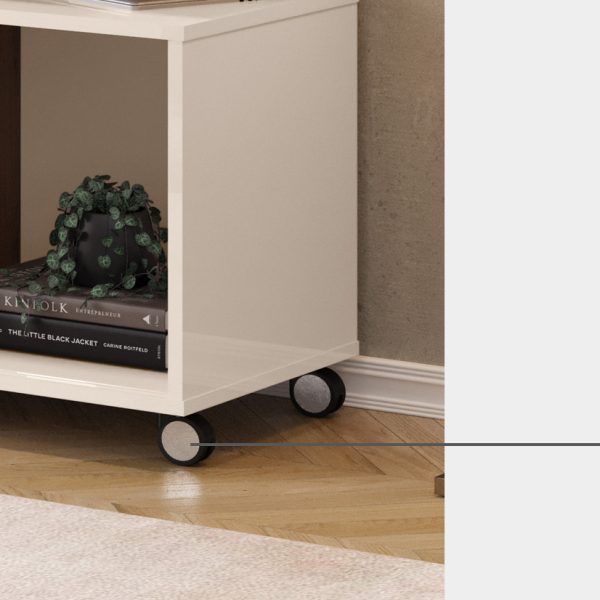 Conta com um tampo com borda frontal chanfrada além de travessas abaixo dele, aumentando sua espessura, trazendo as mais atuais tendências de design. Para armazenar seus objetos, conte com uma espaçosa porta deslizante central com frisos decorativos.