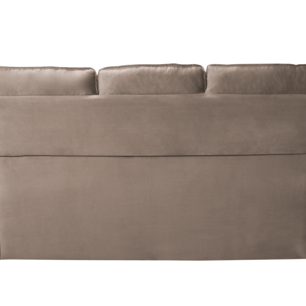 Encosto desmontável em flocos de espuma e camada de fibra de poliéster siliconada.