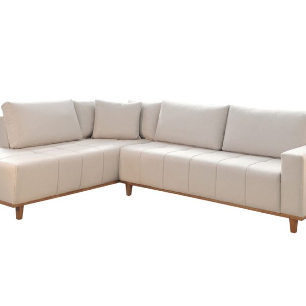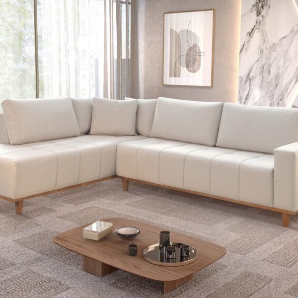 Rodapé e pés em madeira maciça com opções de tonalidade.