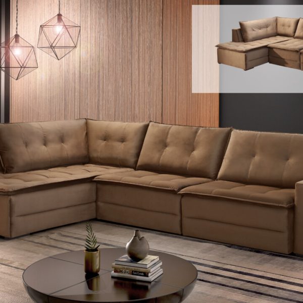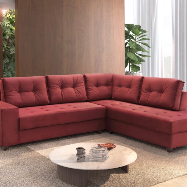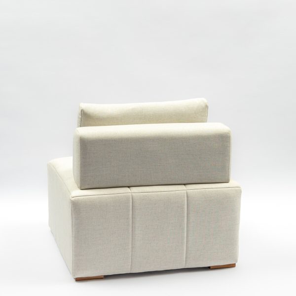 Encosto em Espuma D33 e almofadas soltas em fibra de poliéster siliconada.