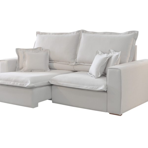Encosto reclinável de almofadas soltas preenchidas com fibra de poliéster siliconada.
