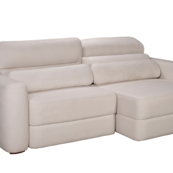 Assento retrátil em espuma D30 soft especial, com camada de espuma HR (alta resiliência), fibra de poliéster siliconada, molas espirais na base e percintas elásticas.