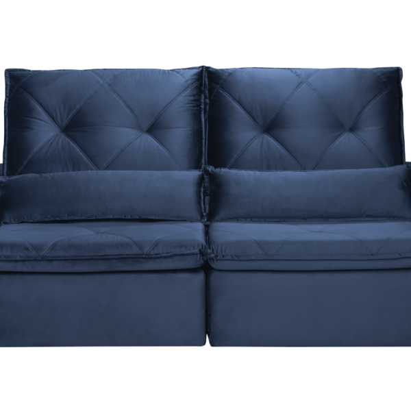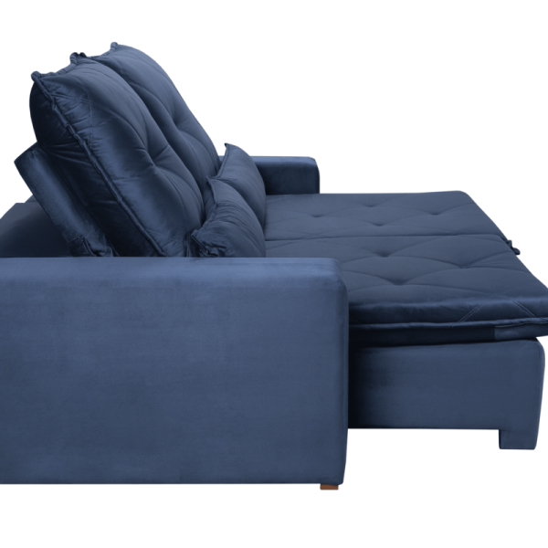 Assento retrátil em espuma D33, com camada de espuma HR, fibra de poliéster siliconada, molas espirais na base e percintas elásticas.
