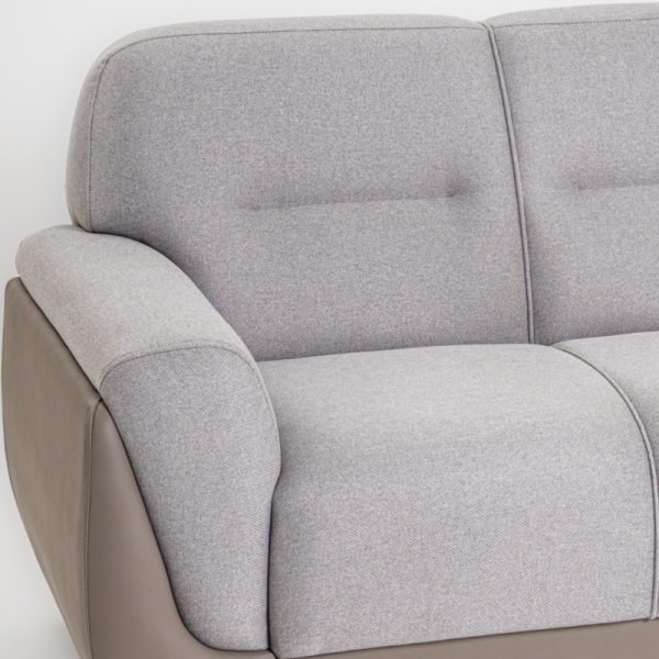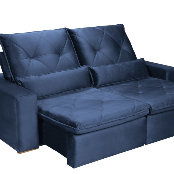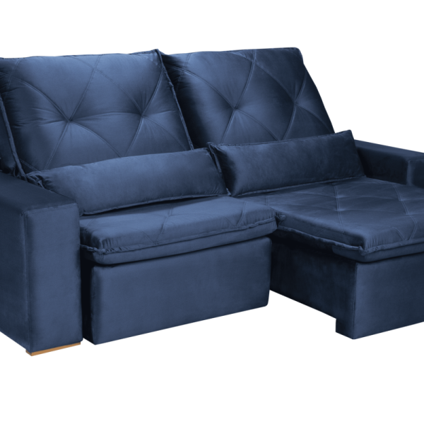 Encosto com almofadas soltas em fibra de poliéster siliconada.