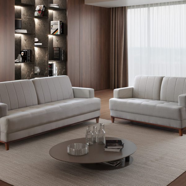Assentos em espuma D33, com camada de espuma HR (alta resiliência), molas de aço “S” e percintas elásticas.