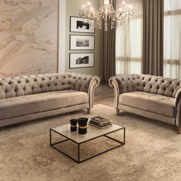 Assentos em espuma D33, com camada de espuma HR, molas de aço “S” e percintas elásticas.