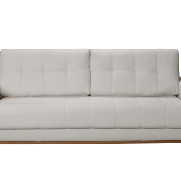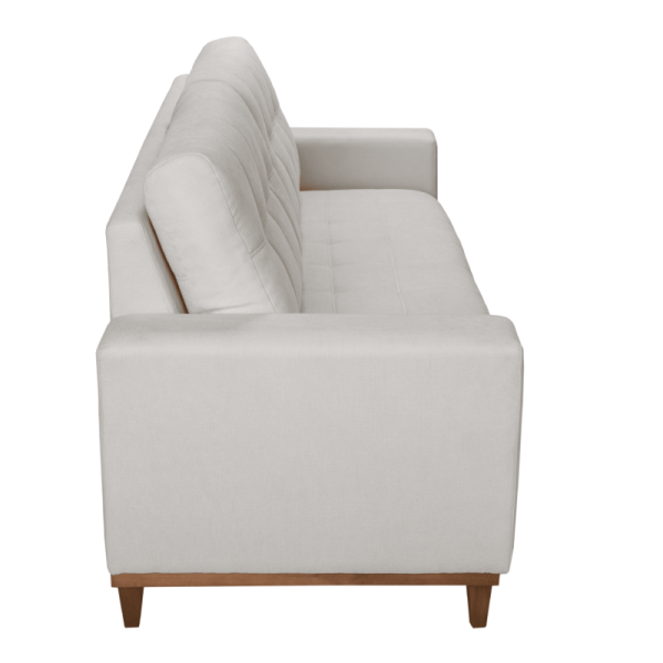 Encosto com almofadas soltas em fibra de poliéster siliconada.